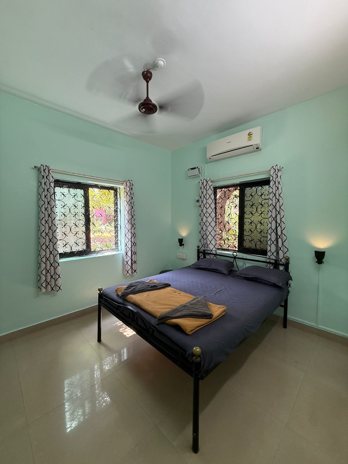 Welcome to the iconic Curlies Blue House, your spacious and stylish Goan escape just a 5-minute walk from Anjuna Beach and the famous Curlies Shack. Perfect for families and groups up to ten guests, this villa blends comfort with calm ocean hues, offering five air-conditioned bedrooms and three modern washrooms for total convenience. You’ll love preparing meals together in the fully equipped kitchen, relaxing on the breezy, covered terraces, and sharing conversation on the private balcony.